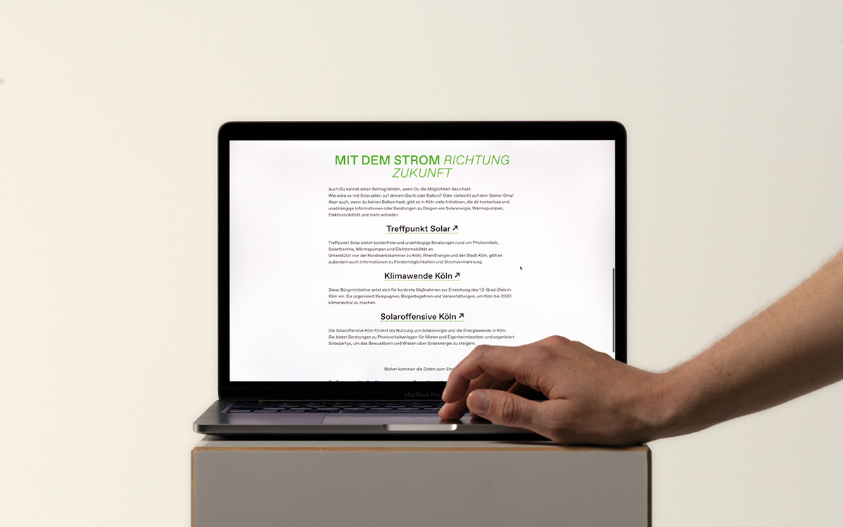 Today, most of our electricity comes from renewables. For a week, these energy particles flowed by in Cologne, making visible the renewable share in Germanys electricity grid in real time.