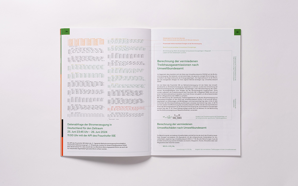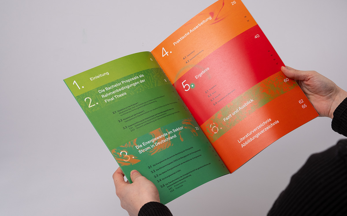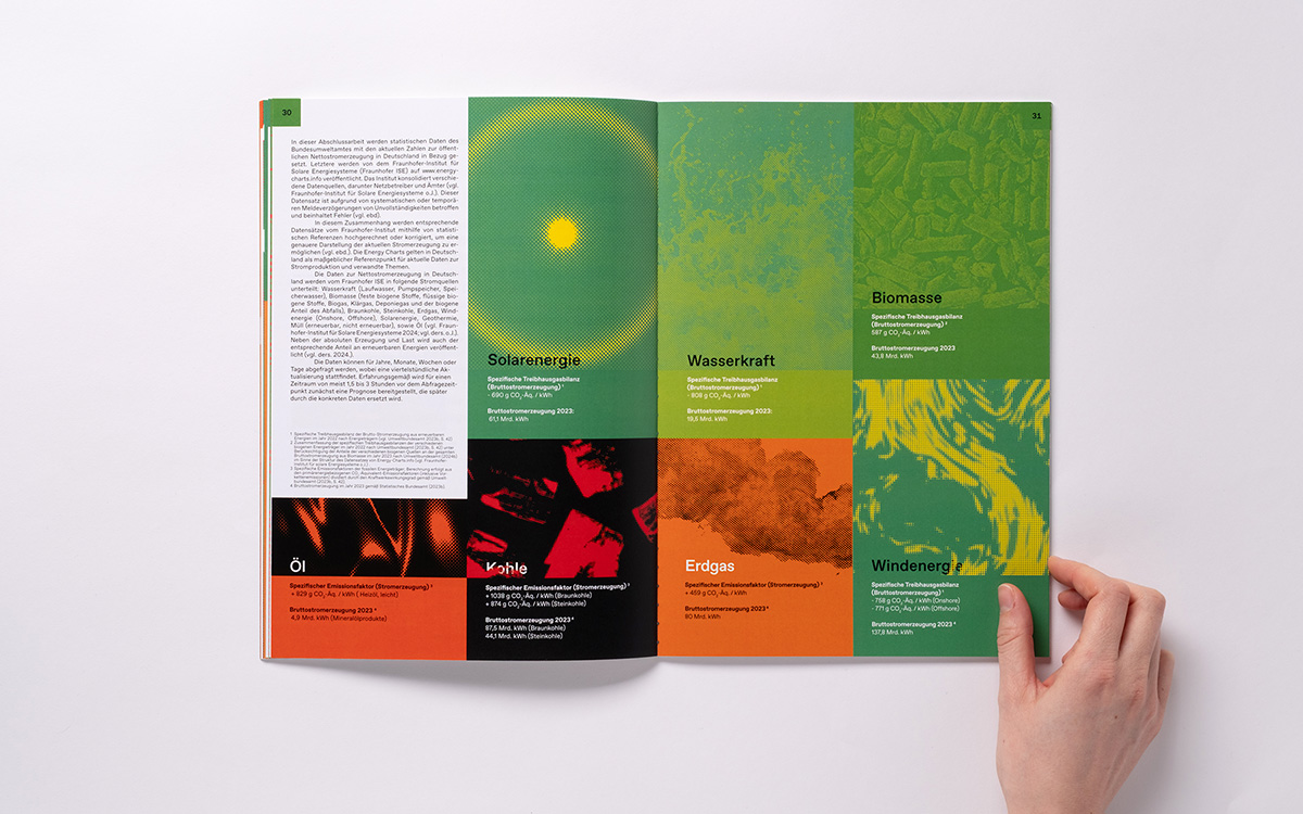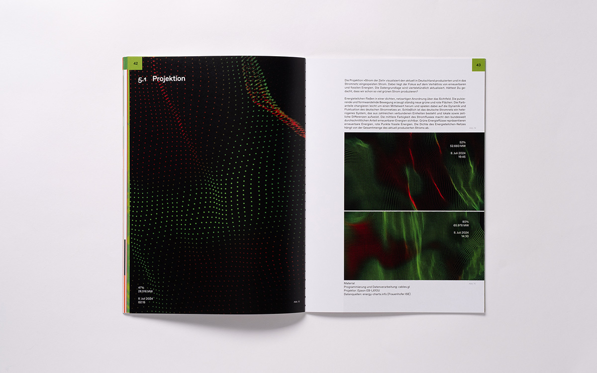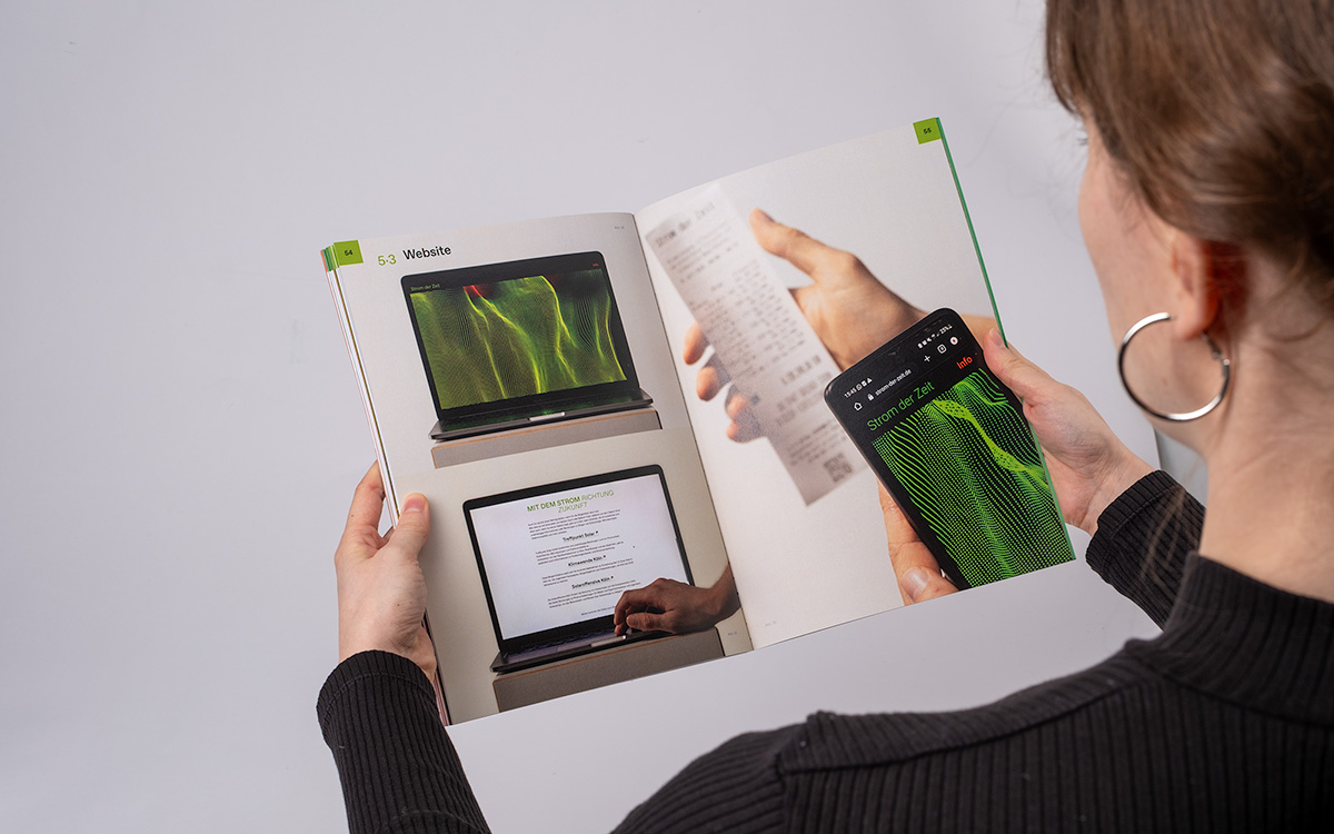 The publication presents the bachelor thesis »Strom der Zeit«. It features in-depth research on the energy transition, relevant datasets and local contexts, and documents the outcomes of the practical design process.